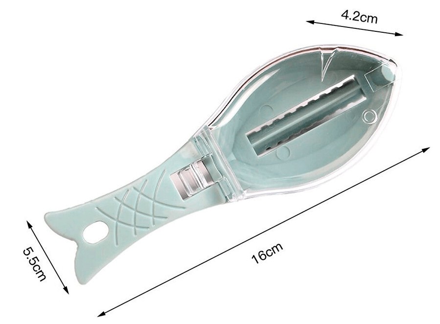 Рибочистка з контейнером (ніж для чищення риби) - сучасний кухонний девайс для безпечного та швидкого чищення риби. Швидко справляється з чищенням різних видів риб, навіть із великою лускою.