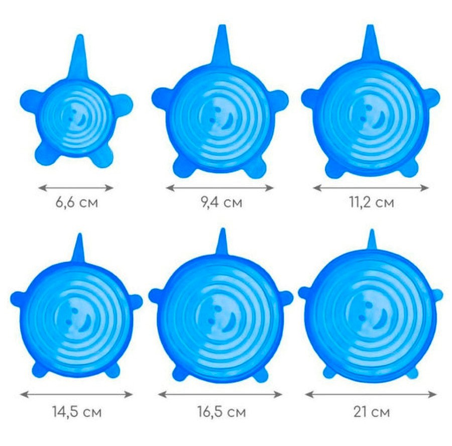Силіконові кришки добре тягнуться, їх можна одягати на тарілки, каструлі, банки, контейнери, а також на самі продукти, наприклад, на половинку кавуна або дині.